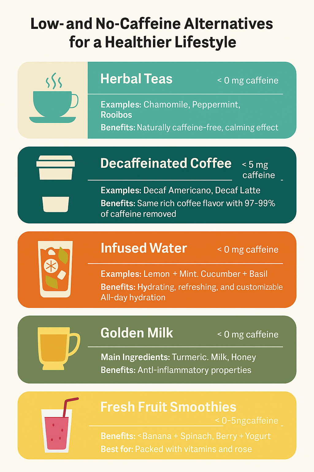 Switching to low- or no-caffeine beverages doesn’t mean giving up on taste or variety. With the right choices, you can enjoy flavorful, refreshing drinks that support your health and energy levels naturally.